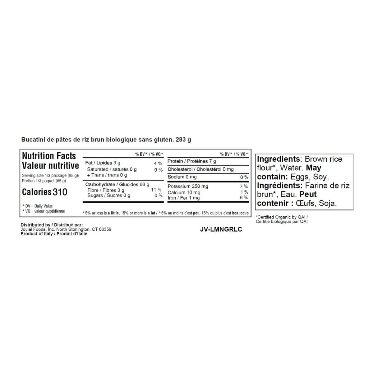 Twirl, slurp, and savour, Jovial Organic Gluten-Free Brown Rice Pasta Bucatini brings one of Italy’s most beloved pasta shapes to the gluten-free world, without compromising texture or taste. Crafted from just one ingredient, organic whole-grain brown rice, this pasta delivers a wonderfully firm, springy bite and a warm, nutty flavour that pairs beautifully with sauces of all kinds.
