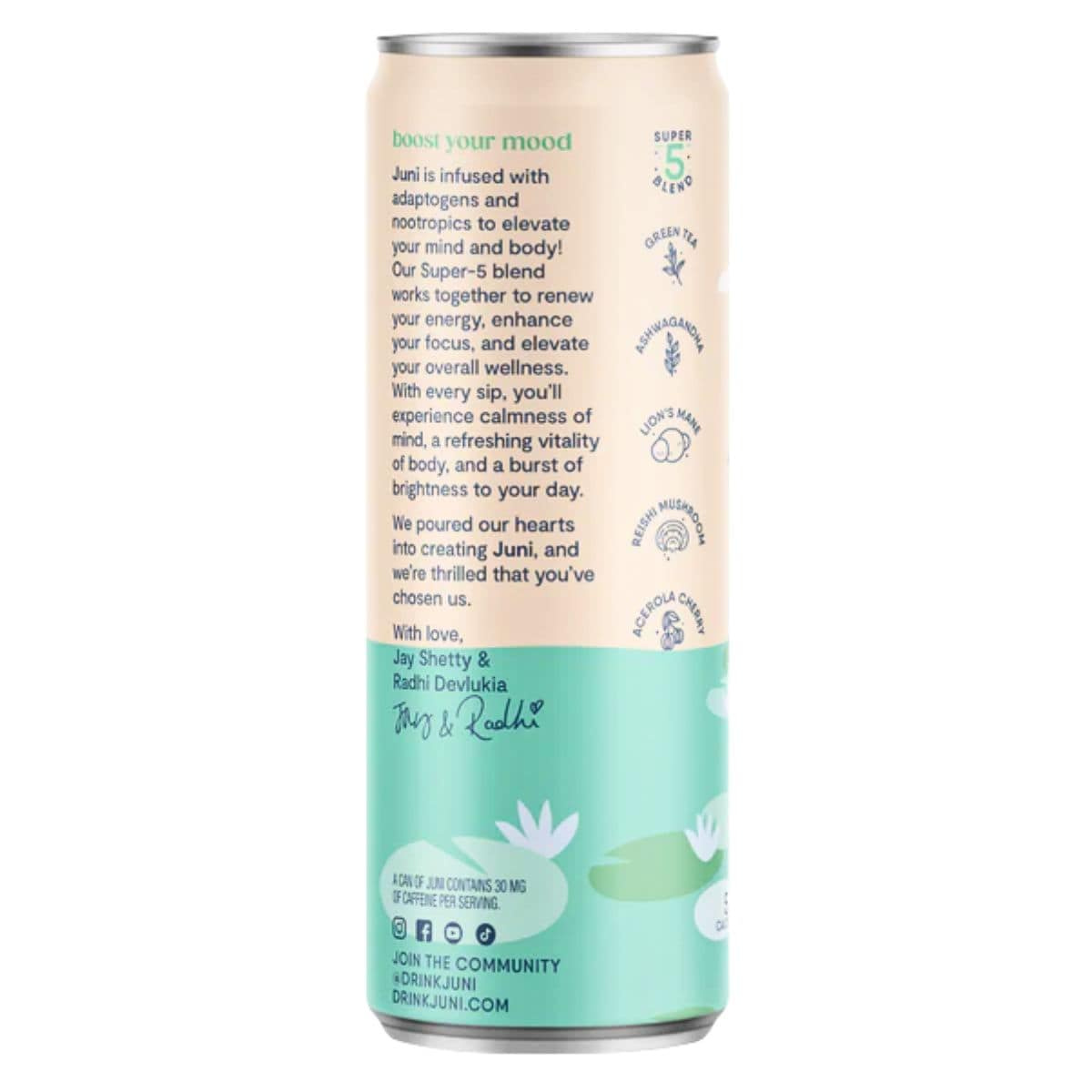 Say goodbye to stress and brain fog, say hello to taste and hydration. Juni Sparkling Adaptogenic Tea Peach is your answer to both, in one can! The benefits of this sugar-free, all-natural, organic green tea drink blow your mind.Â