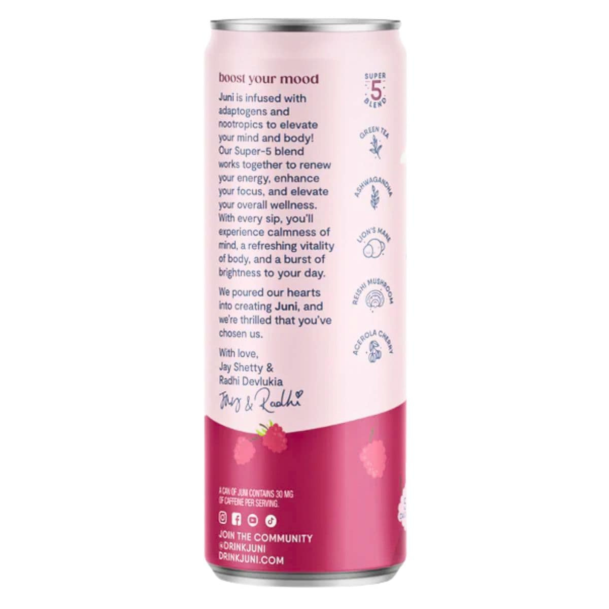 It’s berry good - and berry good for you! Check out the naturally sweet raspberry flavour of Juni Sparkling Adaptogenic Tea Raspberry. Your brain will love it as much as your mouth does, because each can also offers a brain-friendly boost of organic adaptogens and nootropics to help your mind and body reduce and cope with stress…while simultaneously increasing your memory, mental clarity and energy levels.