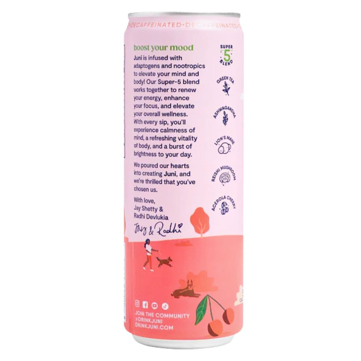 Elevate your hydration - and your mind- with Juni Sparkling Decaffeinated Adaptogenic Tea Cherry Lime. First, you’ll fall in love with the all-natural sweetness of cherries and lime in a refreshing sparkling drink…then the adaptogens and nootropics will help your brain function at its best.
