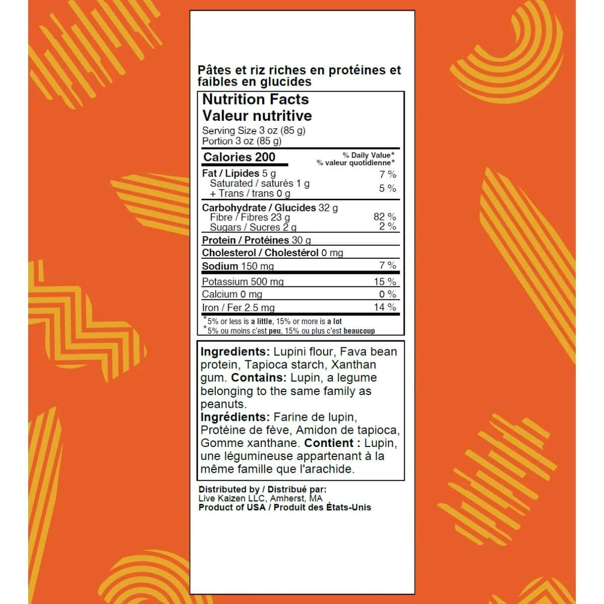 Contains: Lupini (a legume that belongs to the same plant family as peanuts)