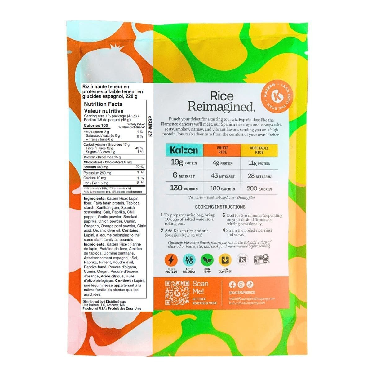 Get ready to spice up your meals with Kaizen’s low-carb Spanish rice! Packed with a bold Spanish flair—think smoky paprika, a dash of fiery chili pepper, and a hint of warm cumin—this low-carb rice is the perfect sidekick to your keto cravings. Made from protein-rich lupini beans, each serving packs 19g of plant-powered protein and 15g of fibre, it’s a high-protein rice that’s gluten-free, grain-free, soy-free, and all the “free” you could want—except flavour. With just 6 net carbs, Kaizen’s lupini rice let’s you say ‘hola’ to rice again!