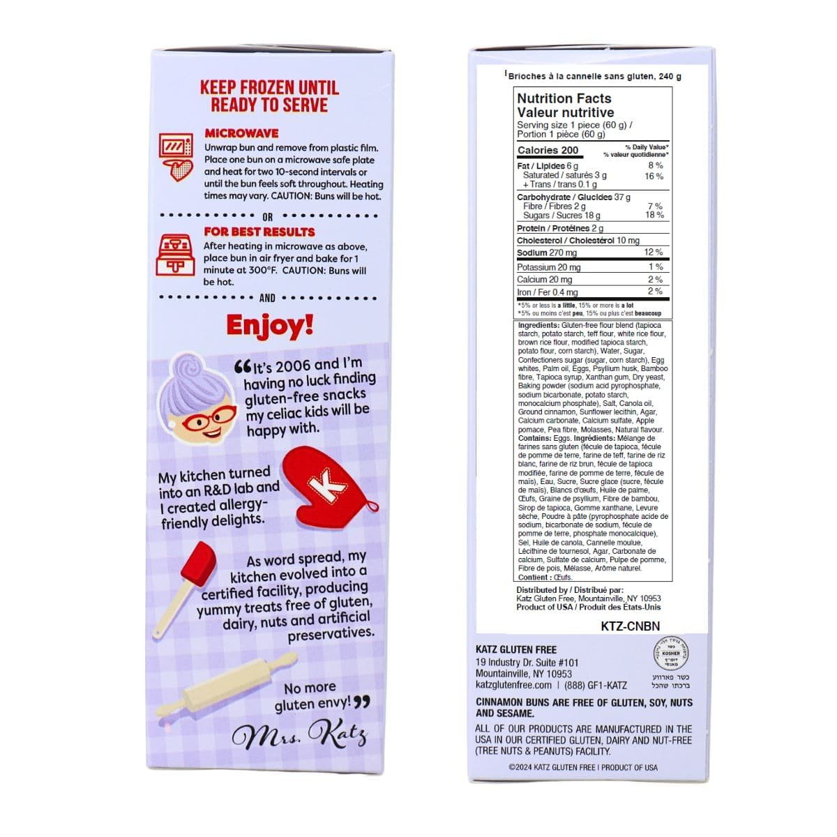 Who says gluten-free means flavour-free? Katz's gluten-free cinnamon buns are here to prove that wrong. Made with real cinnamon and topped with a luscious sweet vanilla frosting, these rolls redefine what it means to be gluten-free. Whether you call them cinnamon buns or cinnamon rolls, one thing's for sure: they're soft, sticky, and utterly irresistible. Dairy-free, soy-free, nut-free, and packed with that comforting cinnamon swirl, these rolls are a gluten-free dream come true.