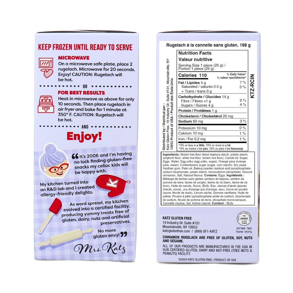 Prepare for a taste explosion with Katze gluten free cinnamon rugelach. These bites are cinnamon rolls with a promotion to snack stardom. Rich, creamy, melt-in-your-mouth dough swirled with just the right amount of spicy sweetness! These rolls are perfect for dunking in milk or sneaking into your bag for the road. Gluten free, dairy free and nut free, they make snack time feel like a special occasion. Warm ‘em up for a nostalgic aroma. It’ll have everyone saying ‘you had me at rugelach!’