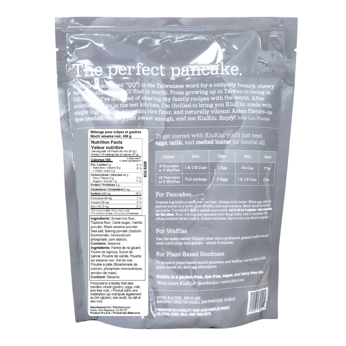 Toasty and rich, with chewy centers and crisp golden edges, this mix brings serious flavour to the table. Kiukiu Black Sesame Mochi Pancake & Waffle Mix blends deeply roasted sesame into a soft, stretchy batter that cooks up warm and nutty.Â
