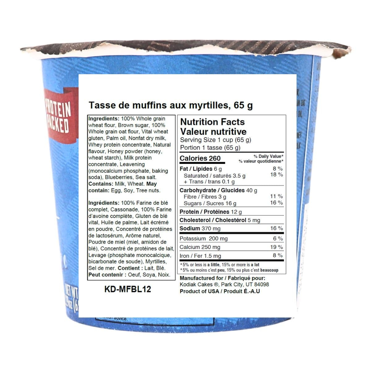 Satisfy your cravings for a warm blueberry muffin, without having to do all the work or feel the guilt after! Kodiak Cakes Blueberry Muffin Cup contains 12 grams of protein, and is made from whole grains and real, wild blueberries, making it a healthier alternative to traditional muffins that slug you down and leave you hungry. The perfect grab-and-go snack that will curb your craving for something sweet and leave you feeling nourished and full!