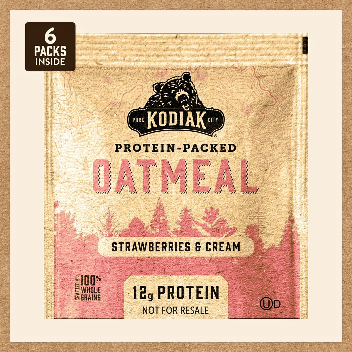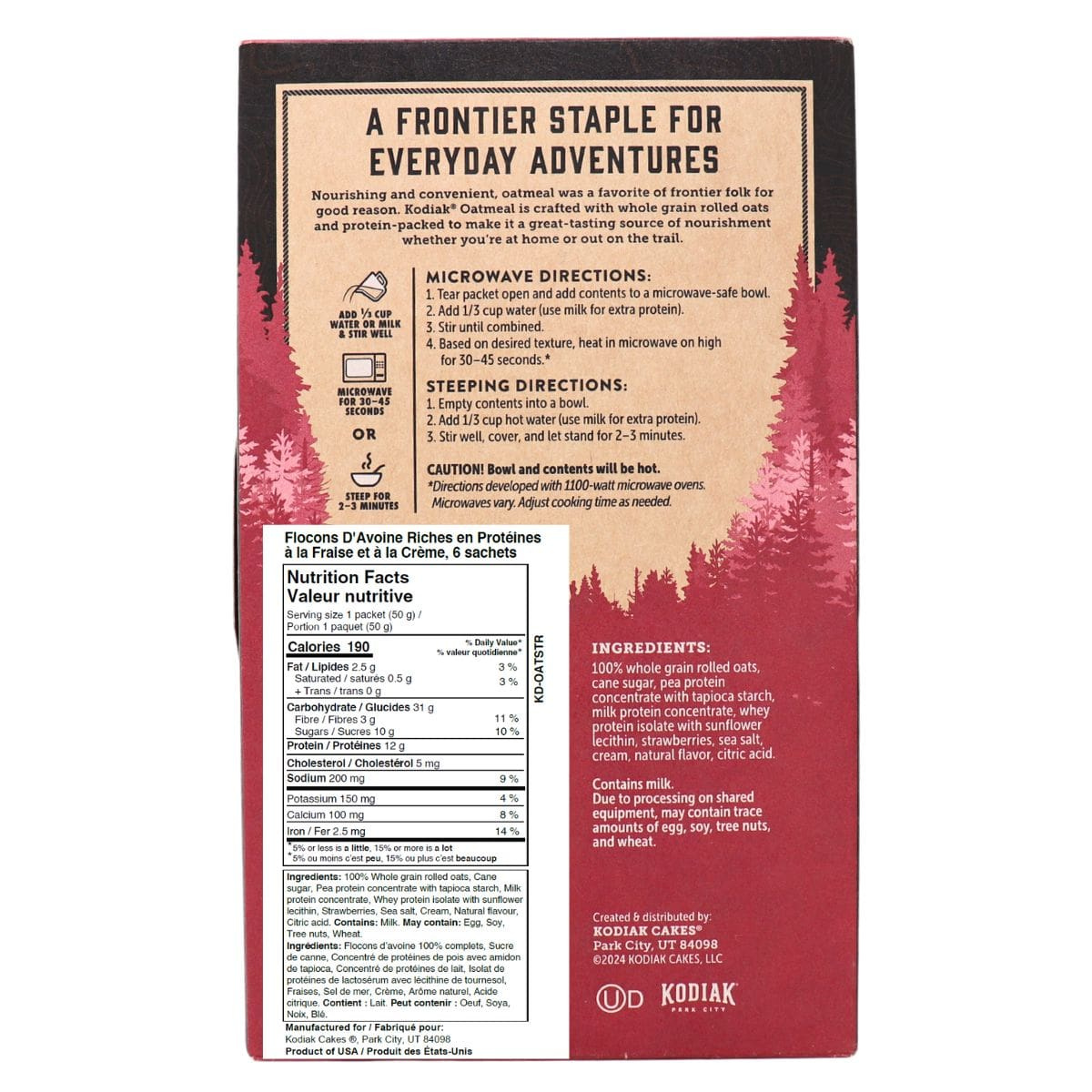 Enjoy a quick cup of warm oatmeal made with whole grain oats, sweet strawberries and cream - ready in 1 minute, for those mornings you need something that’s easy to make but also filling and satisfying! This hearty, fibre-rich instant oatmeal contains 12 grams of protein - great reasons to make Kodiak Cakes oatmeal your go-to breakfast of choice!