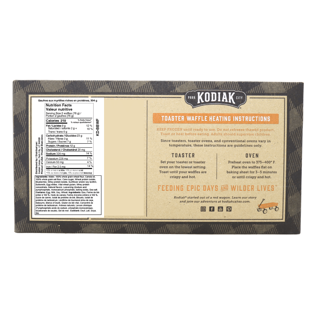 Start your day with a burst of mountain-fresh blueberry goodness! Kodiak Cakes Blueberry Protein Waffles pack 12g of protein and the sweet, tangy flavour of real blueberries. Each bite burst with juicy berry goodness and hearty 100% whole grain! Whether it’s a chaotic morning or a lazy Sunday brunch, these protein waffles will find their place on your table. Protein-packed blueberry goodness? Better be jumping out of bed and into the kitchen every morning!