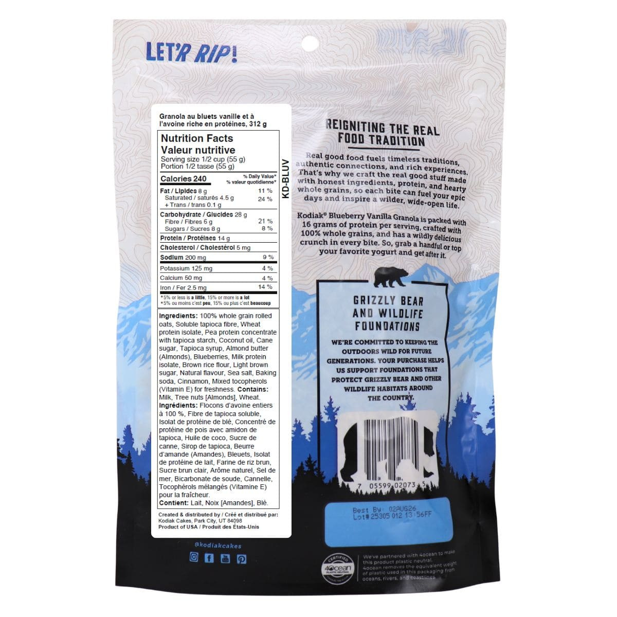 Crunchy oats, sweet blueberry notes, and smooth vanilla come together in this hearty protein-packed granola. Kodiak Blueberry Vanilla Protein Granola delivers a satisfying crunch with a touch of sweetness. It’s built for people who want granola that actually fills you up.