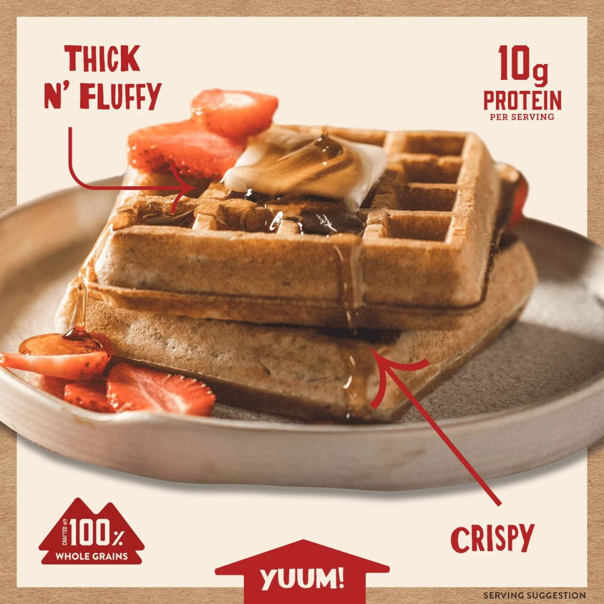 Start your morning strong with Kodiak High-Protein Thick and Fluffy Power Waffles in Buttermilk & Vanilla. These golden, bakery-style waffles are crafted with whole grains and boosted with protein to help keep you energized and satisfied. Each serving delivers a perfectly fluffy texture, a hint of vanilla sweetness, and that classic buttermilk flavour, like a stack fresh off the griddle without the prep.