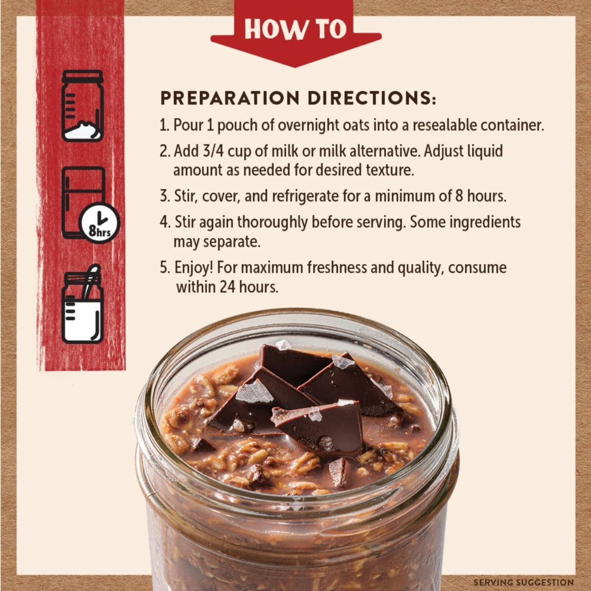 The pouch format keeps things simple; add milk, stir, and let it soak overnight for a thick, spoonable texture by morning. These are the overnight oats you prep when you want to keep things high-protein & full of chocolate. Top it with strawberries, banana slices, or a little extra sprinkle of chocolate if you want that dessert-for-breakfast energy. Made with chia, flax, and quinoa, these gluten-free overnight oats have a heartier feel and a naturally cozy texture that’s easy to enjoy first thing in the morning.