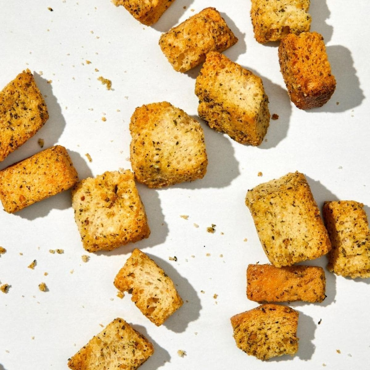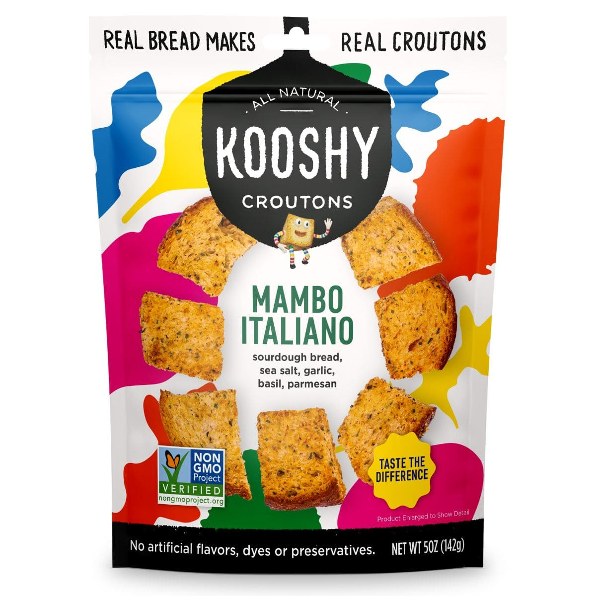 You'll find yourself saying "grazie" to Kooshy's Mambo Italiano sourdough croutons after every flavour-filled bite! Made with the finest sourdough bread and seasoned to perfection with a delicious blend of sea salt, basil, garlic, and parmesan, these Italian croutons will have you dancing the Mambo--because they’re not just a snack, they’re also a dance party for your taste buds! Whether you're looking to add some crunch to your salad, elevate your soup game, or simply want a tasty snack to munch on, with Kooshy's croutons you'll be saying "ciao" to bland and boring!