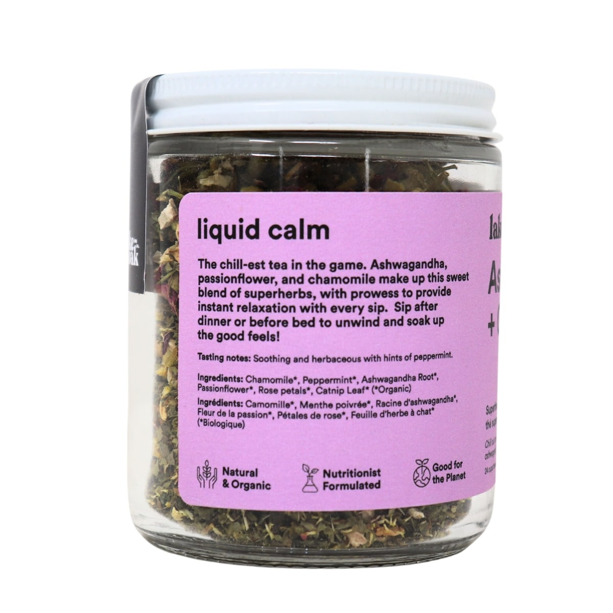 Find your calm with Lake & Oak Tea Co.’s Ashwagandha + Chill Superfood Tea Blend, a soothing loose-leaf herbal tea crafted to help you unwind naturally. Made with 100% organic ingredients like chamomile, peppermint, and rose petals, this cozy blend is enhanced with ashwagandha root, passionflower, and catnip leaf, powerful adaptogenic herbs traditionally used to ease stress, calm the mind, and promote relaxation.