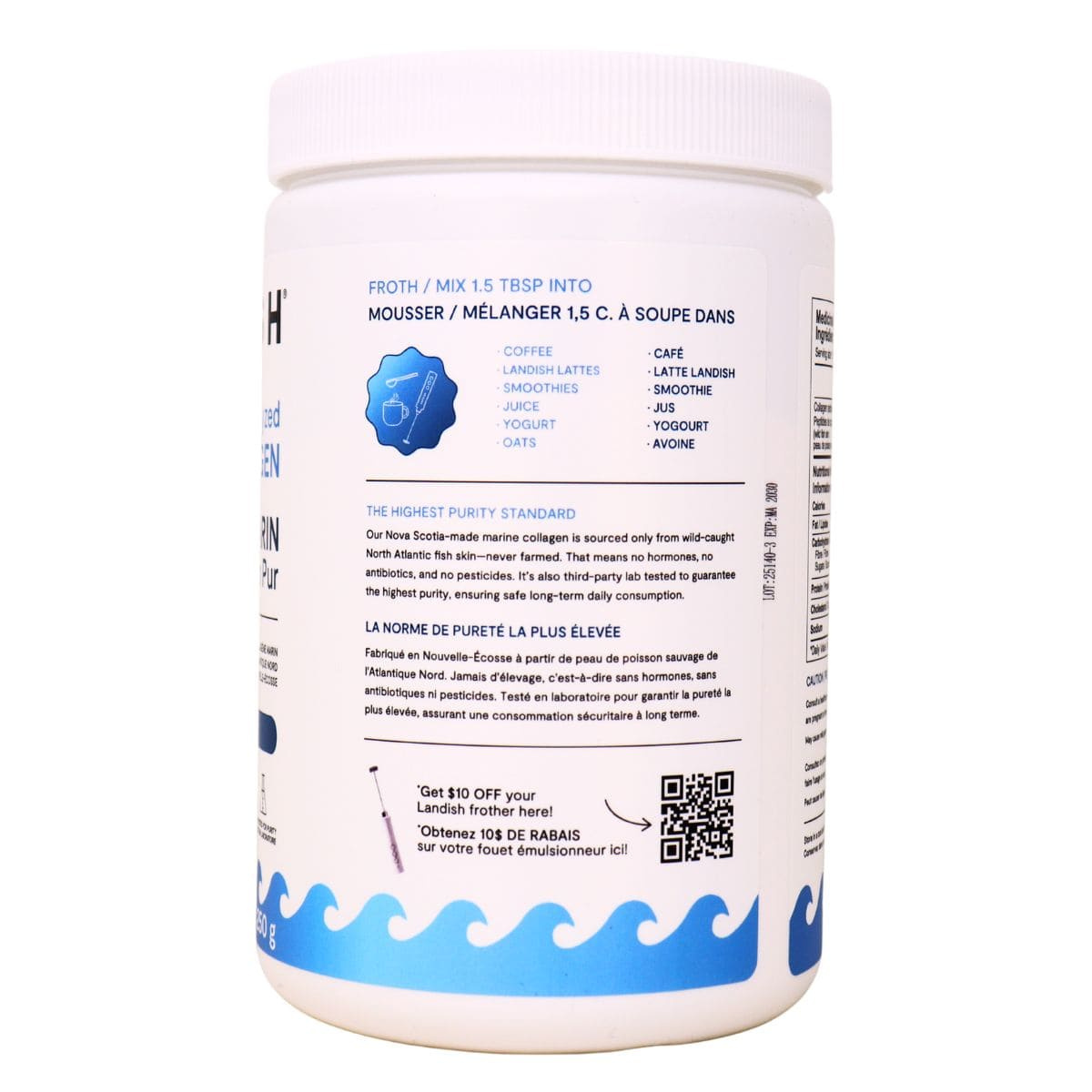 Clean, pure, and easy to make part of your day. Landish Marine Collagen comes from sustainably sourced North Atlantic fish, providing a clean, high-quality protein that helps support healthy skin, hair, nails, and joints. It’s a simple way to nourish your body from the inside out, made to blend effortlessly into your routine.