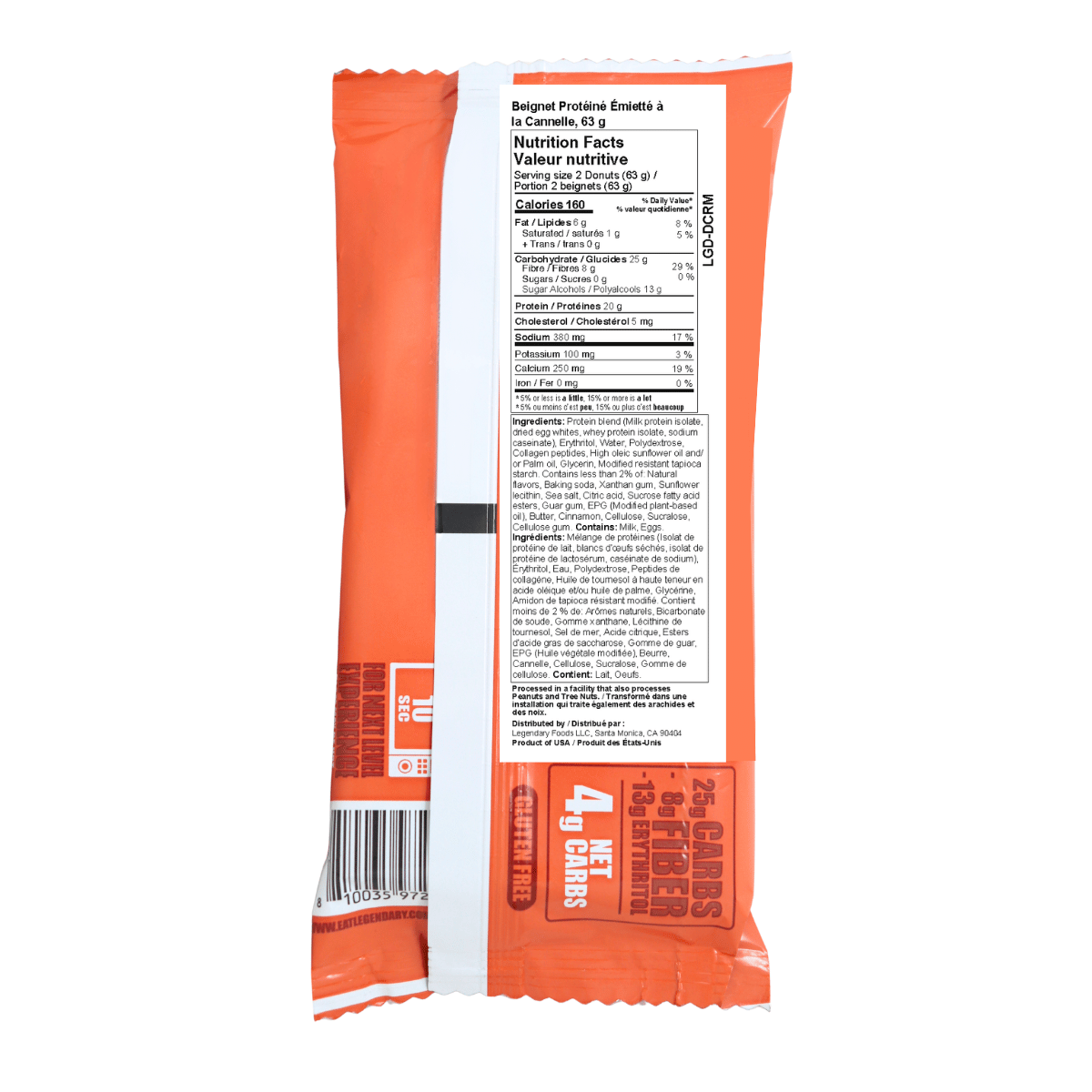Whether it’s your morning snack on the go or a sub for your favourite protein bar, these high protein cinnamon donuts are ready to bring the protein with none of the extras. Legendary Foods is ready to satisfy your sweet tooth while keeping your health goals on track, with clean macros and a little bit of cinnamon cookie crumble.