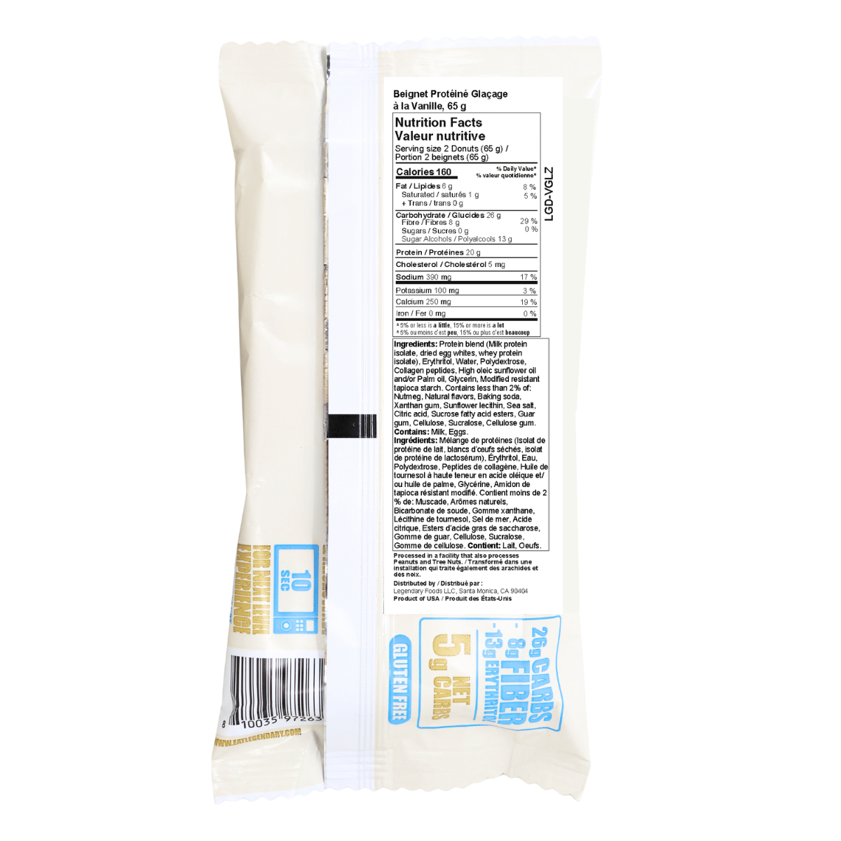 Soft vanilla cake with a smooth glazed finish, no sugar needed. Legendary Foods Vanilla Glaze Protein Donuts pack 20 grams of protein and just 5 grams of net carbs into every two-donut serving, all without a single gram of sugar. It’s the classic vanilla glazed donut you crave, reimagined to keep up with your goals.
