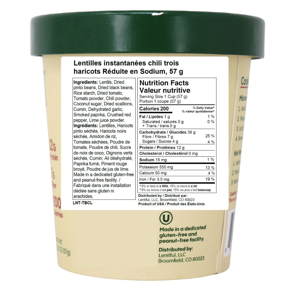 Hearty, satisfying, and ready when you need good food fast. Lentiful Low Sodium Three Bean Chili brings the flavour of a slow-simmered chili into a convenient, low-sodium lentil cup. Made with lentils and a trio of beans, it’s rich in plant-based protein and fibre while keeping the sodium light for balanced nutrition you can feel good about.
