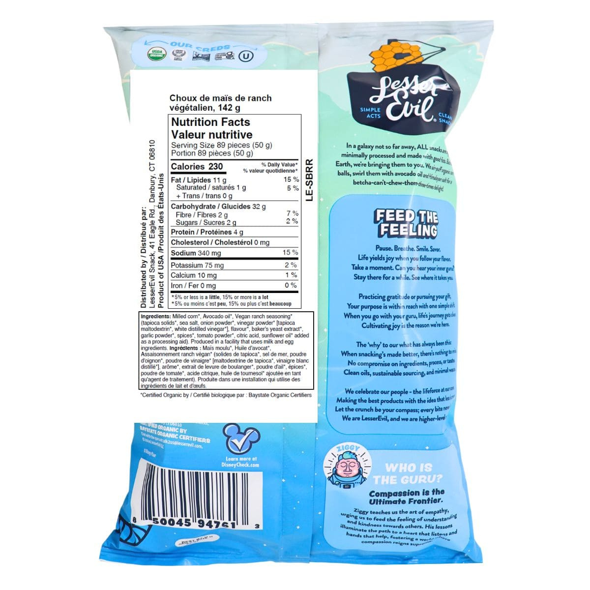 Lesser Evil's Ranch Rocket Ship Space Balls take the classic ranch experience and launch it into the stratosphere of deliciousness, all while keeping it 100% vegan and gluten-free! That’s right, this light and airy corn puff rocket ship is fuelled by the creamy, herby goodness of traditional ranch, and left the dairy in a galaxy far, far away. Made with simple organic ingredients (no rocket science required!), this vegan ranch chip takes your snack game to the outer limits of deliciousness!