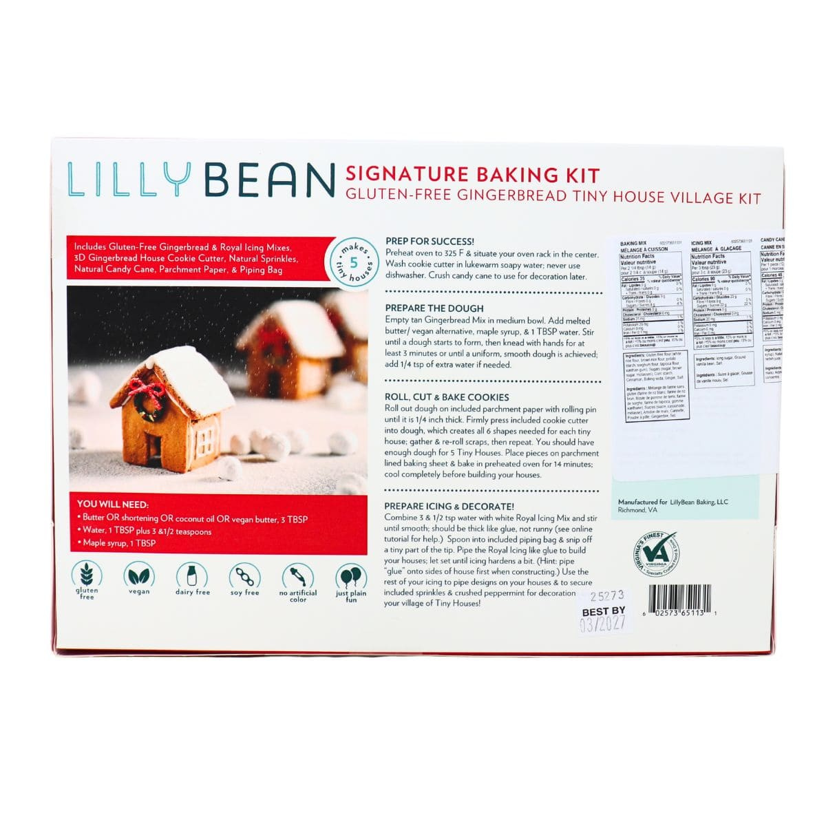 Get ready to unleash your inner architect and pastry chef, all in one box! With Lillybean's Gingerbread House Village Kit, you'll easily bake, build, and decorate your very own enchanting village of tiny vegan and gluten-free gingerbread houses! What's inside this deliciously allergen-free gingerbread wonderland, you ask? Each gingerbread kit includes all the dry ingredients, house cookie cutters, and decorating supplies you'll need to create a gingerbread masterpiece that'll have Santa himself doing a double-take. With royal icing, all-natural sprinkles, and candy canes, get ready to stack 'em high, sprinkle 'em wild, and sparkle your way to gingerbread glory!