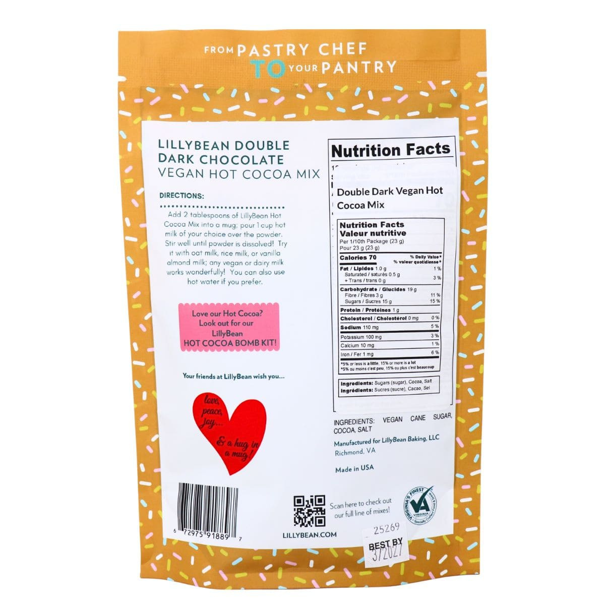 Lillybean believes that double the chocolate means double the pleasure! That’s why they made this indulgent double dark chocolate hot chocolate mix! Deep, intense, and complex, with every sip, you can experience a decadent hot chocolate that’s truly twice as nice! Gluten-free, vegan, soy-free, and dairy-free, are you ready to double down on deliciousness with Lillybean’s dark hot chocolate?