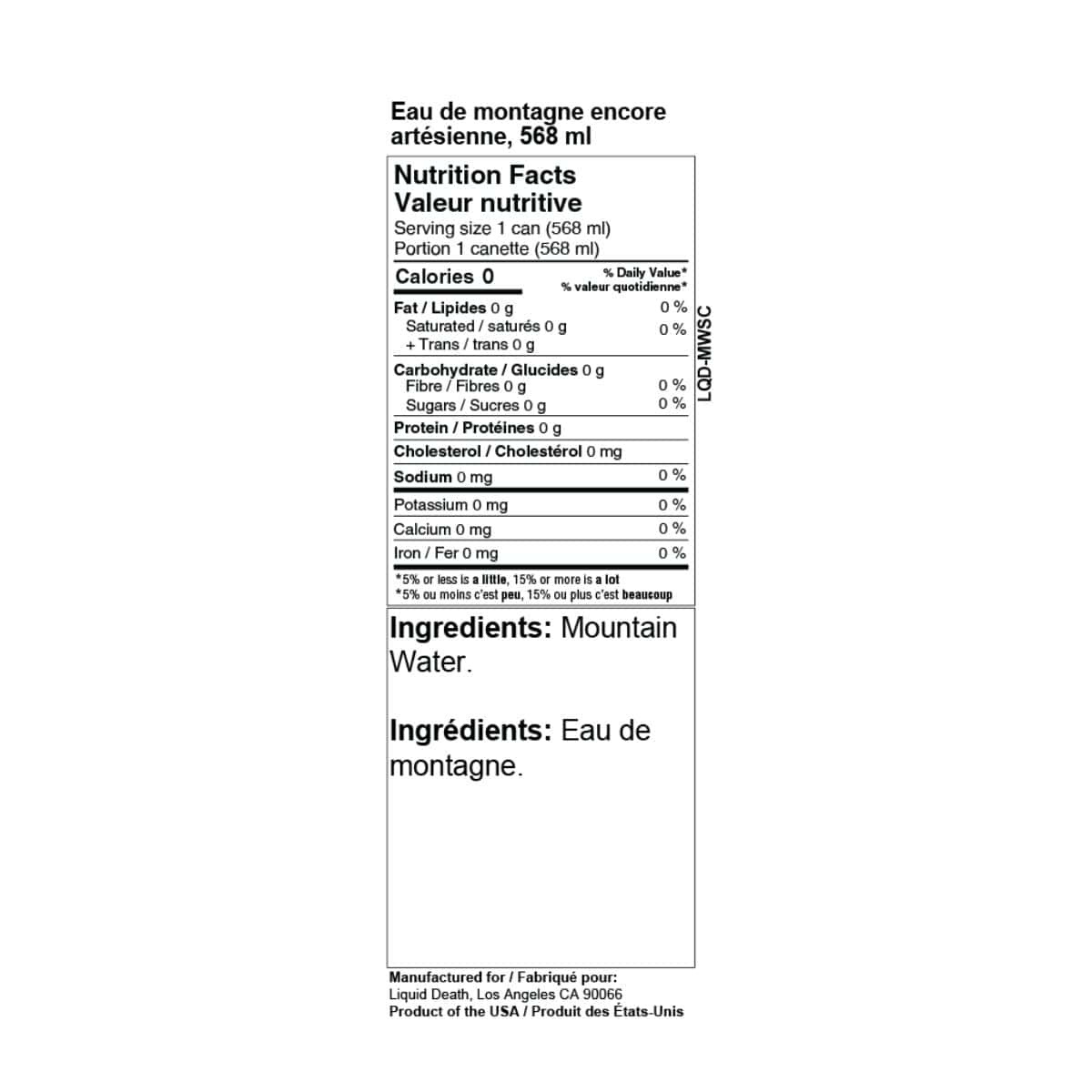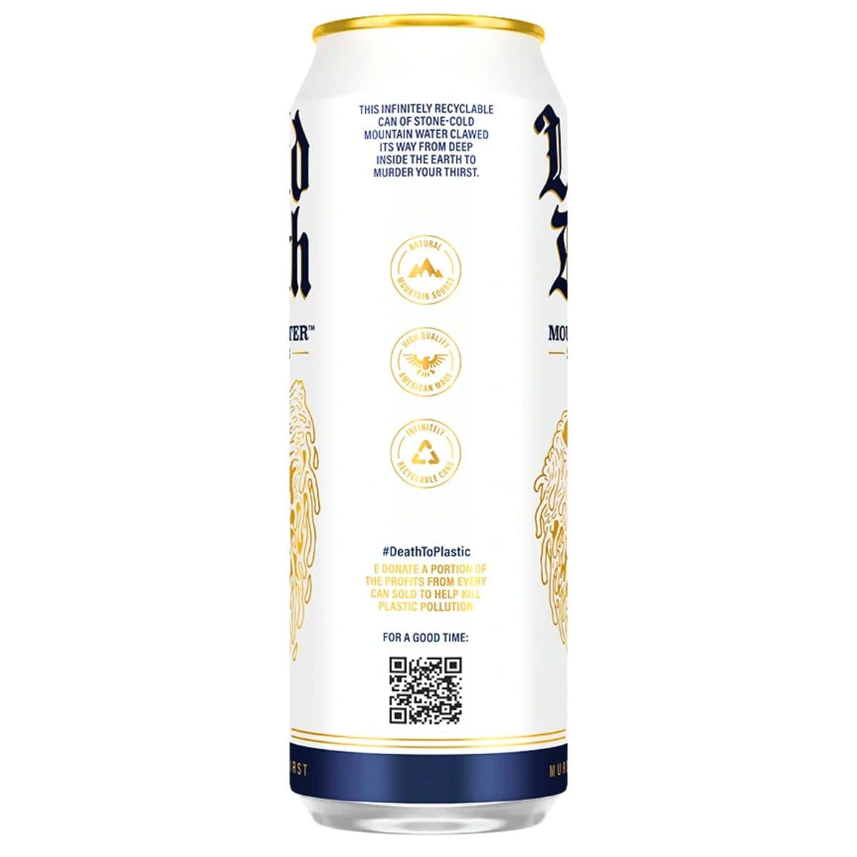 Awesome taste, awesome for you, and awesome for our environment. Liquid Death is 100% mountain water from the Alps—and it comes in an infinitely recyclable can (unlike plastic bottles that take years to degrade)! It has far more natural electrolytes than other waters, and its 8.1+ PH is perfect for your body’s needs. Every sip will leave you dying for more!