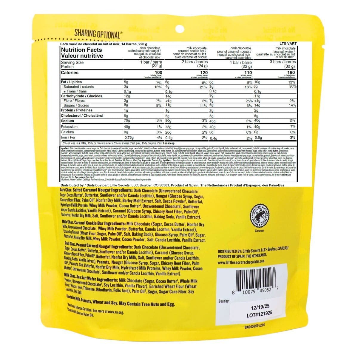 Little Secrets has cracked the code with their Milk & Dark Chocolate Variety Pack. This covert collection is packed with familiar chocolate favourites, each crafted from sustainable cocoa with no artificial ingredients, sweeteners, flavours, or colours. They may taste and look like your classic chocolate bars, but they’re on a mission to satisfy your sweet tooth with way less sugar! With four different flavours, Milk Chocolate Caramel Cookie, Milk Chocolate Sea Salt Wafers, Dark Chocolate Peanut Caramel Nougat, and Dark Chocolate Salted Caramel Nougat, Little Secret’s chocolates are so good, it's a secret that just might be worth sharing.