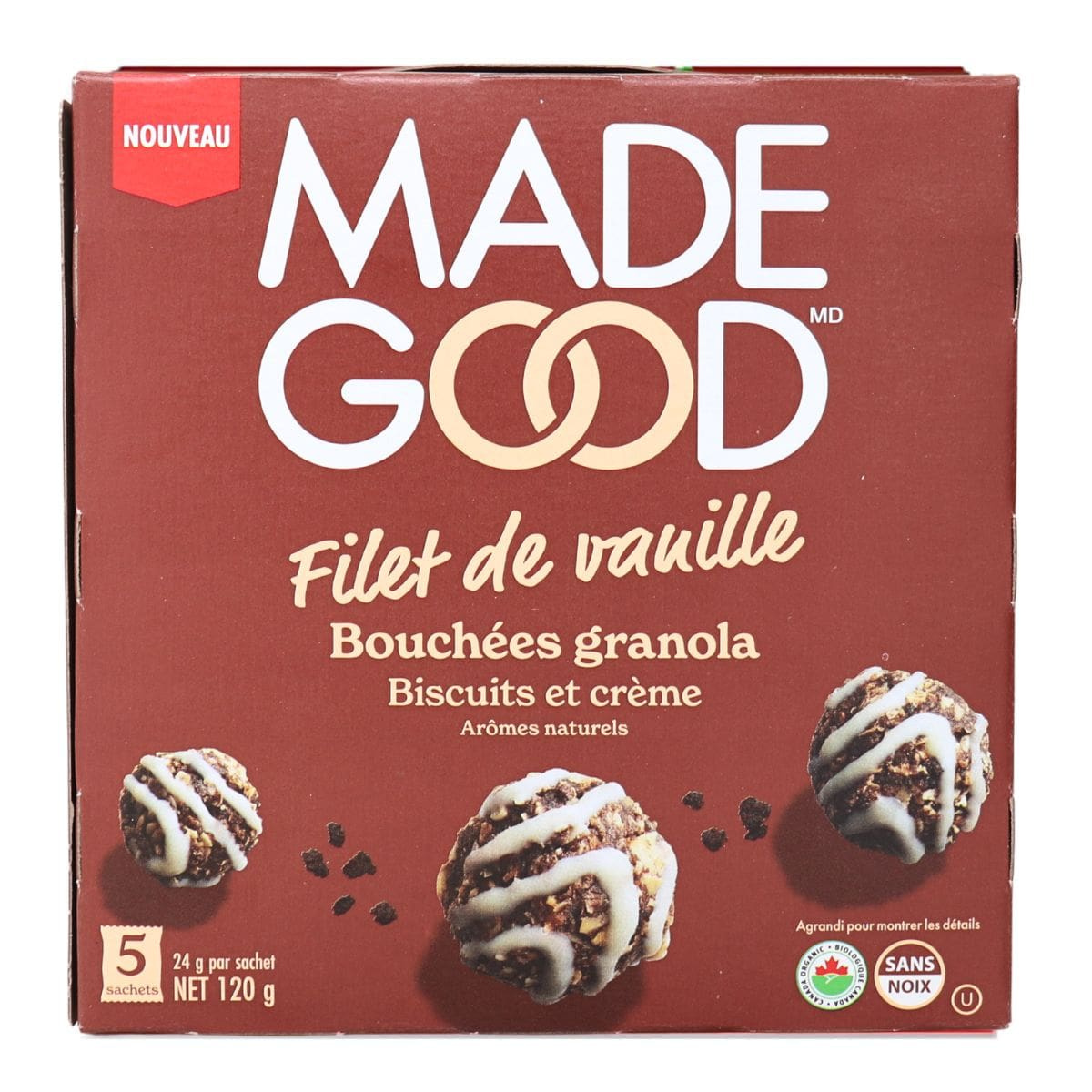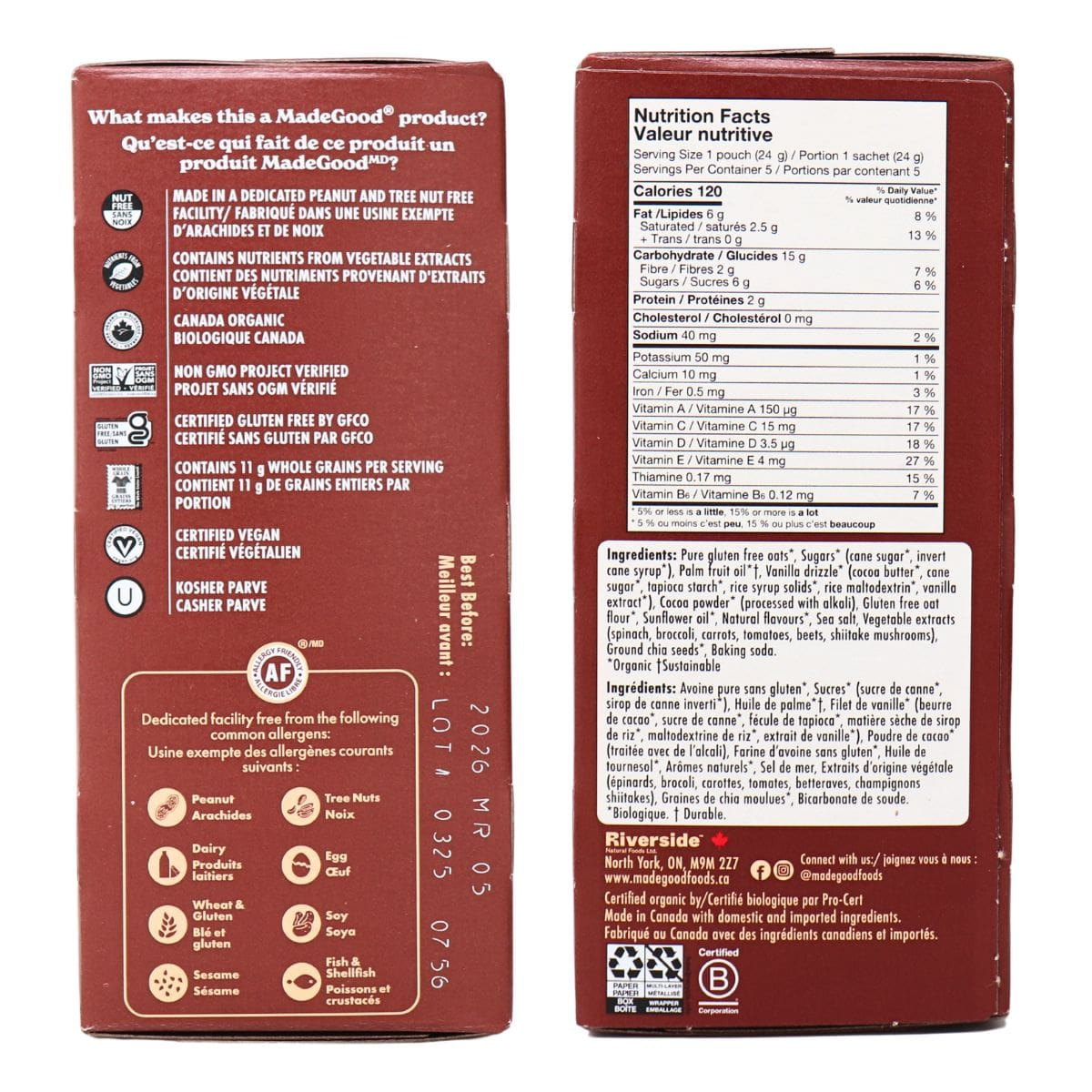 Better tasting AND better for you? That’s what MadeGood is all about! With crisp, golden oat clusters drizzled in a luscious, chocolatey drizzle, these crunchy oat bites are the ultimate fusion of cookies and creme! Gluten-free, nut-free, dairy-free, and egg-free, these cookies and creme bites are totally allergen-free! Made with simple organic ingredients while also sneaking in the nutrients from a full serving of vegetables, this is one oat-mazing snack!