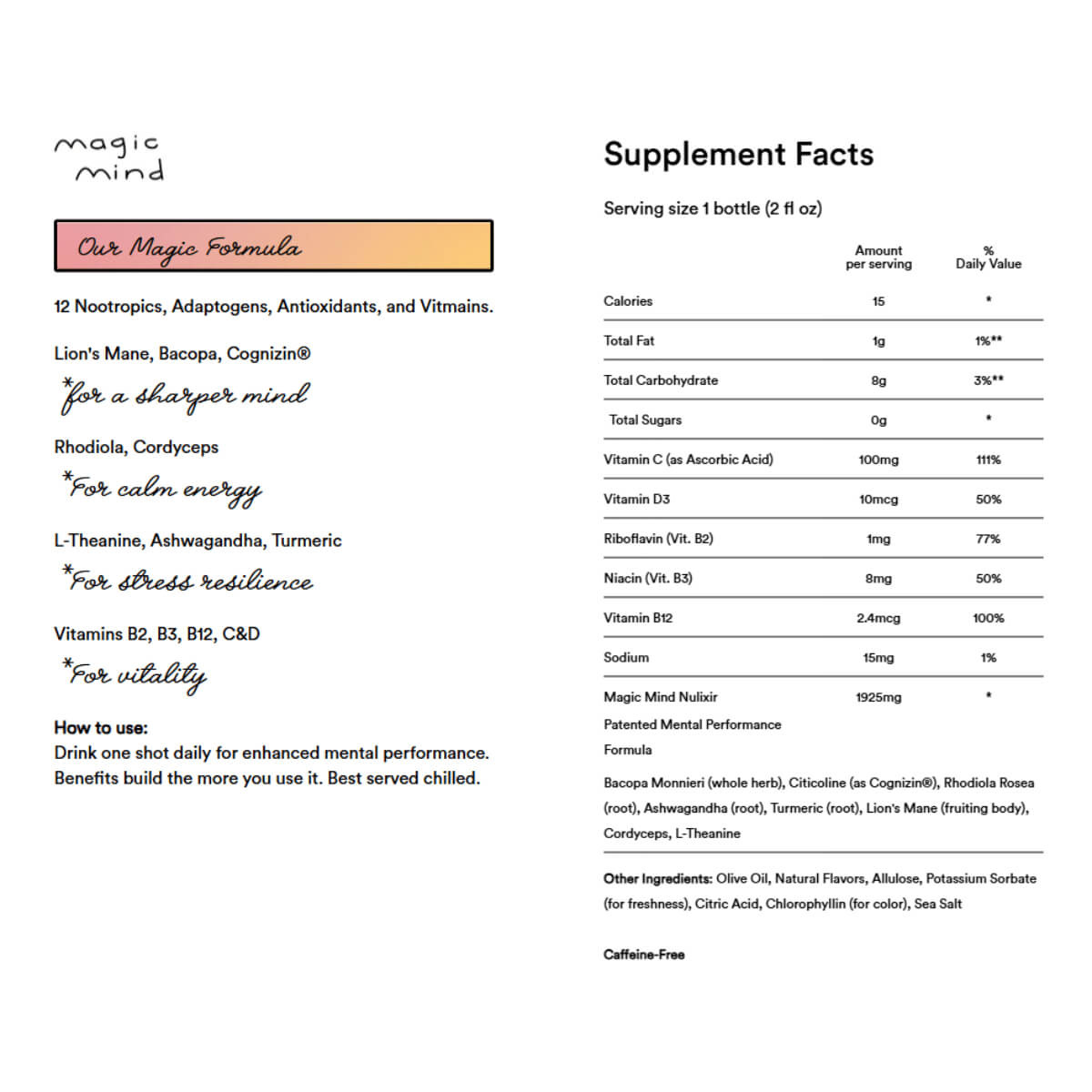 3 shots of Magic Mind Mental Performance Shot Caffeine & Sugar Free, 60mL each