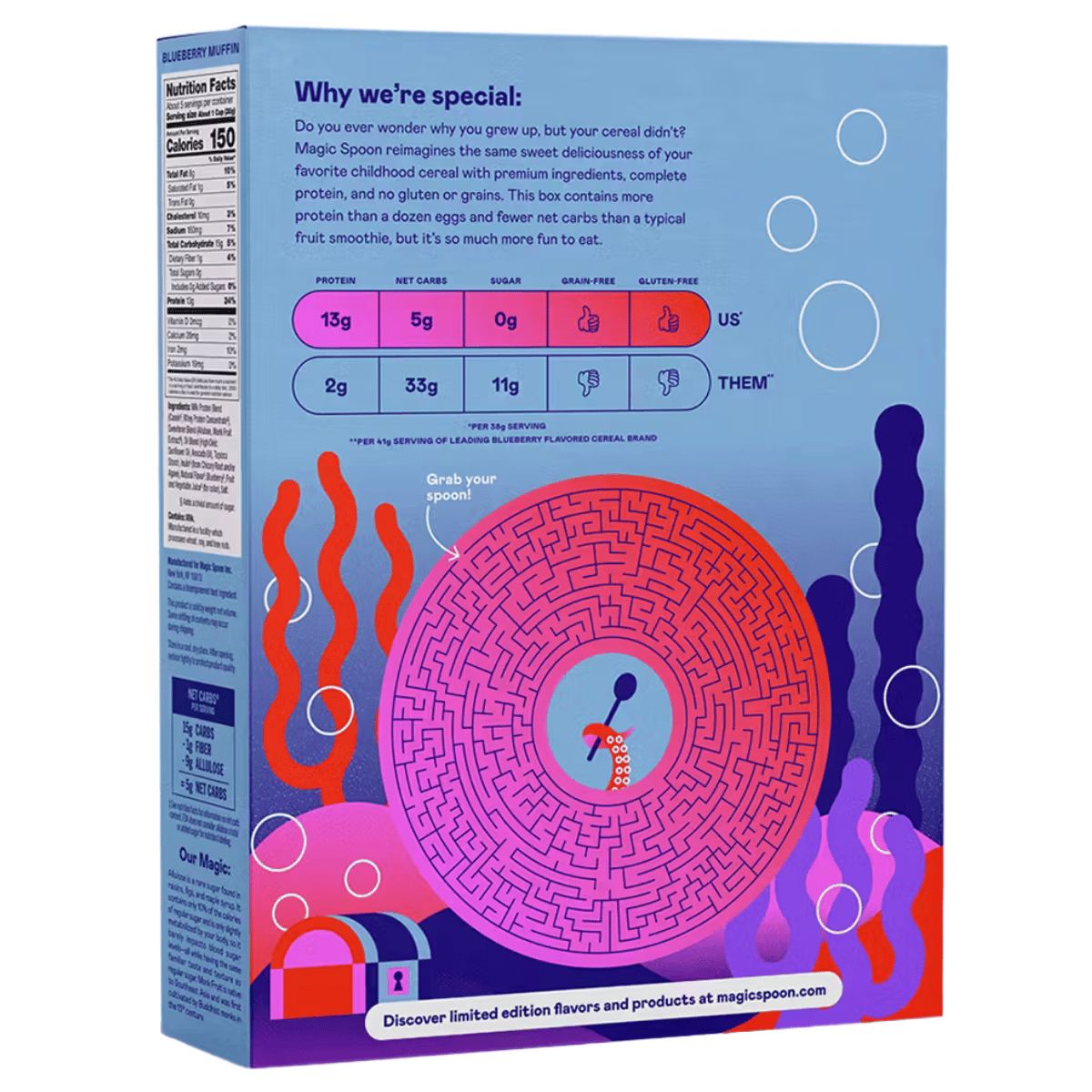 Packed in a two-box set, it’s easy to stash away for rushed mornings or late-night cravings. Magic Spoon Blueberry Muffin Cereal brings a little bakery magic to your breakfast routine, with ingredients that actually fit the way you eat.