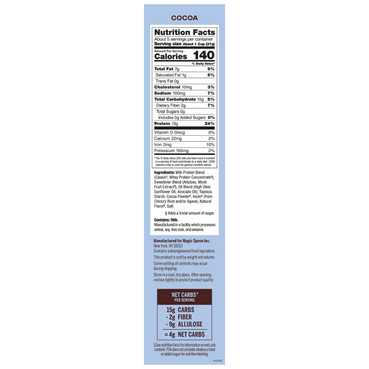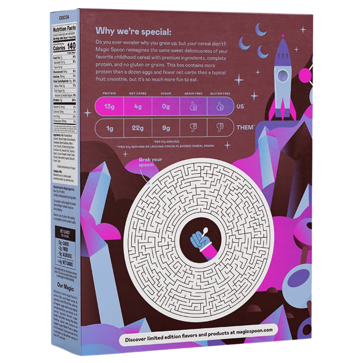 Chocolatey cereal used to mean sugar highs and over-the-top mascots. This version keeps the chocolate but skips the sugar crash. Magic Spoon Cocoa Cereal is rich, cocoa-chocolatey goodness you remember, and made for grown-up mornings with goals.
