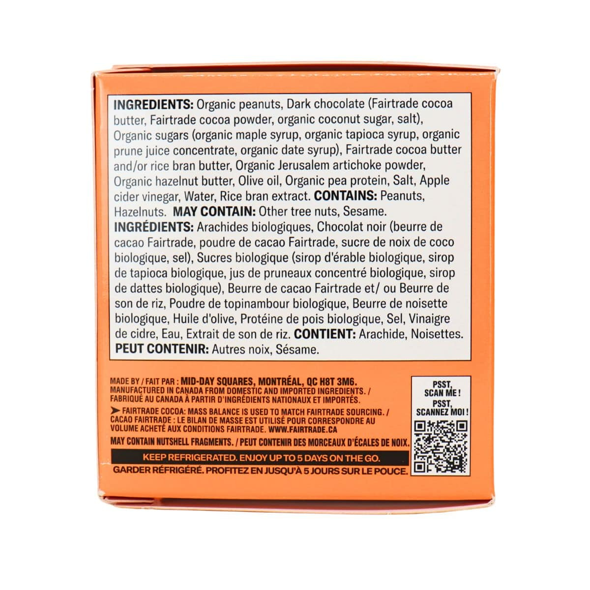 Go ahead, it’s okay to drool over Mid-Day Squares Peanut Butta Functional Chocolate bar! This creamy and chocolate bar combines our three loves: peanut butter, chocolate, and healthy eating. Mid-Day Squares combines gluten-free and organic ingredients to make a smooth chocolate bar filled with 6g of plant-based protein and 4g of fibre. Chocolatey and nutty, this bar will be your new obsession!