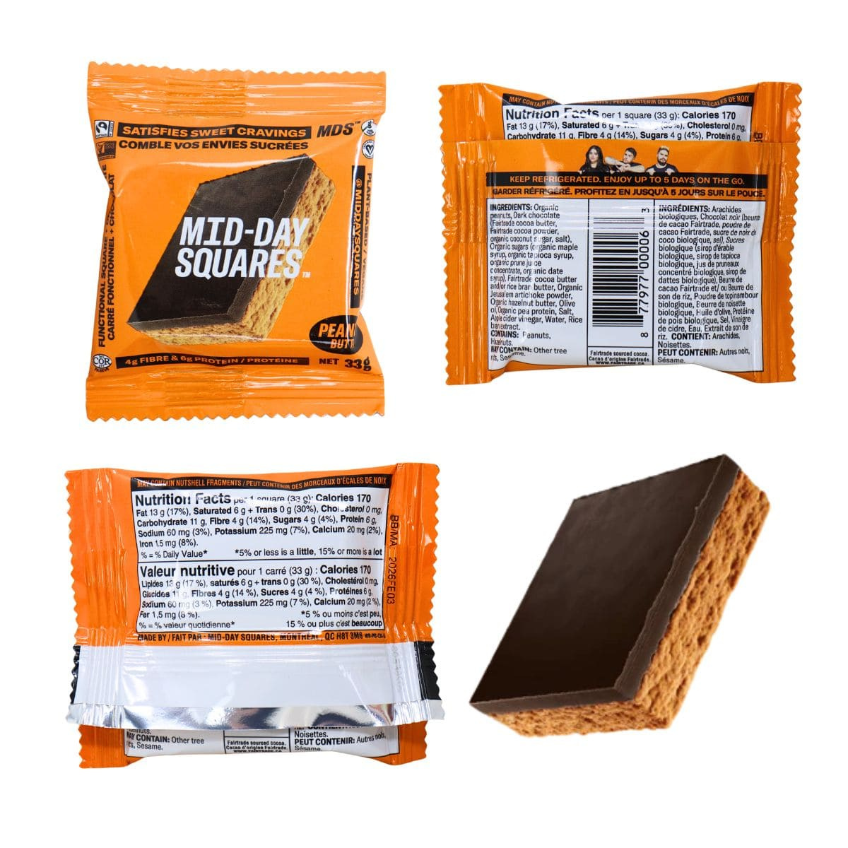 Need a midday snack? Mid-Day Squares are the perfect fix. With every flavour in this variety pack, you can finally try them all! Loaded with clean plant protein, real chocolate, healthy fats and excellent fibre. Each square is designed to stop your hunger or cravings in between meals. So no matter where life takes you—work, school, the gym—you can always rely on Mid-Day Squares to help keep your energy up and your tummy satisfied!