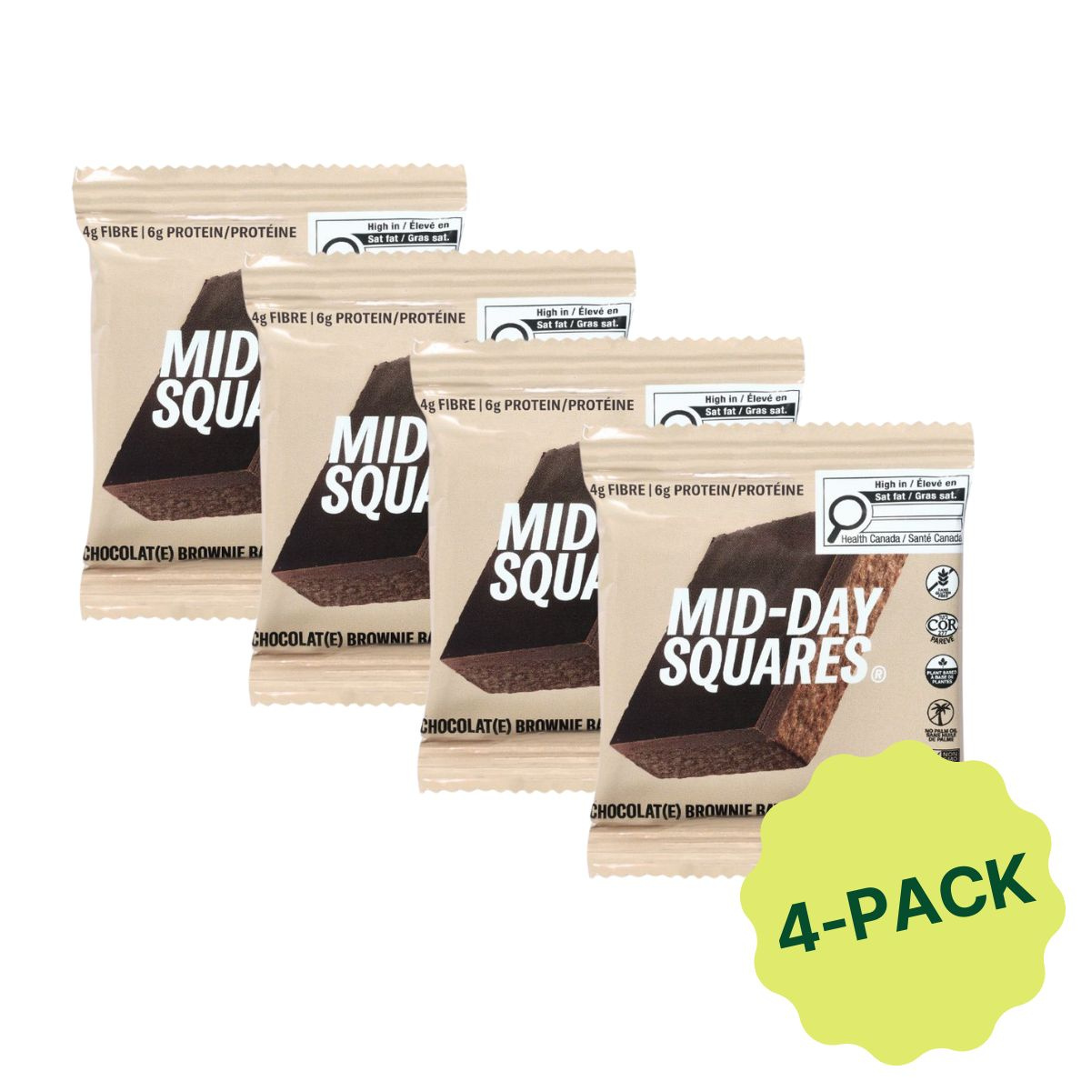 Take a bite of Mid-Day Squares’s brownie batter and let the rich and fudgy chocolate melt in your mouth. This functional chocolate bar is like biting into a freshly baked brownie, but with all the convenience of a snack bar! And now, with a 4 pack, you can enjoy the convenience of small packages with a big taste.