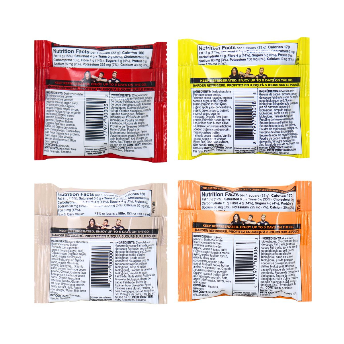 Each chocolate square is made with clean, wholesome ingredients and packed with 6g of plant-based protein, 4g of fibre, and superfood ingredients to help fill you up without weighing you down! And with the convenience of our smaller 4-pack, you can finally try all the flavours without committing to just one.