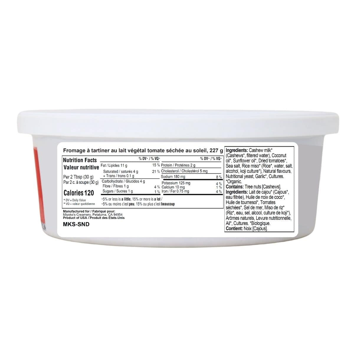 Miyoko’s Creamery Organic Cashew Milk Cheese Spread Sundried Tomato, 227 g