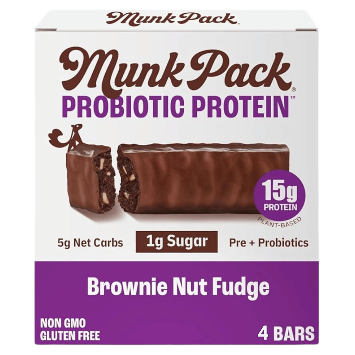 Munk Pack Probiotic Protein Bar Brownie Nut Fudge, 4 Bars