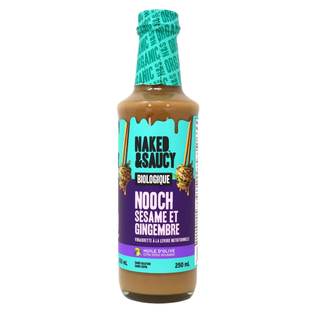 Don't let your salads go naked any longer! Naked & Saucy’s nutritional yeast salad dressing is made with simple organic ingredients like luscious extra virgin olive oil, nutty sesame, and fiery ginger for a vegan salad dressing that's as sassy as it is saucy! With no artificial nonsense, no weird additives–just simple organic ingredients, this sesame ginger dressing is ready to dress up your salads, without weighing them down!