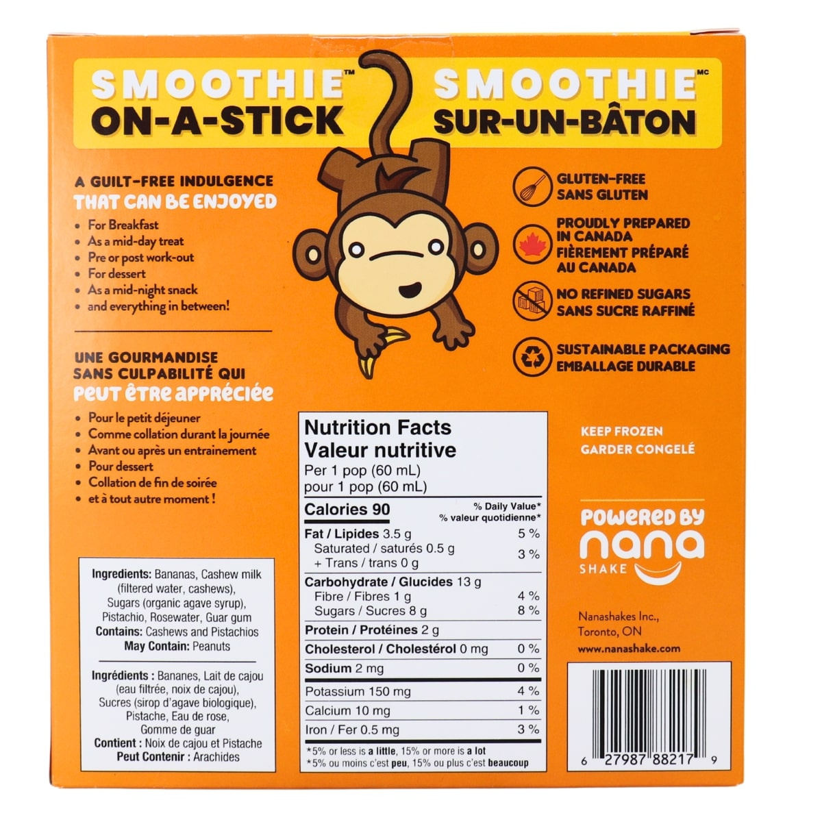 Bananas, Cashew milk (Filtered water, Cashews), Sugars (Organic agave syrup), Pistachio, Rosewater, Guar gum.
