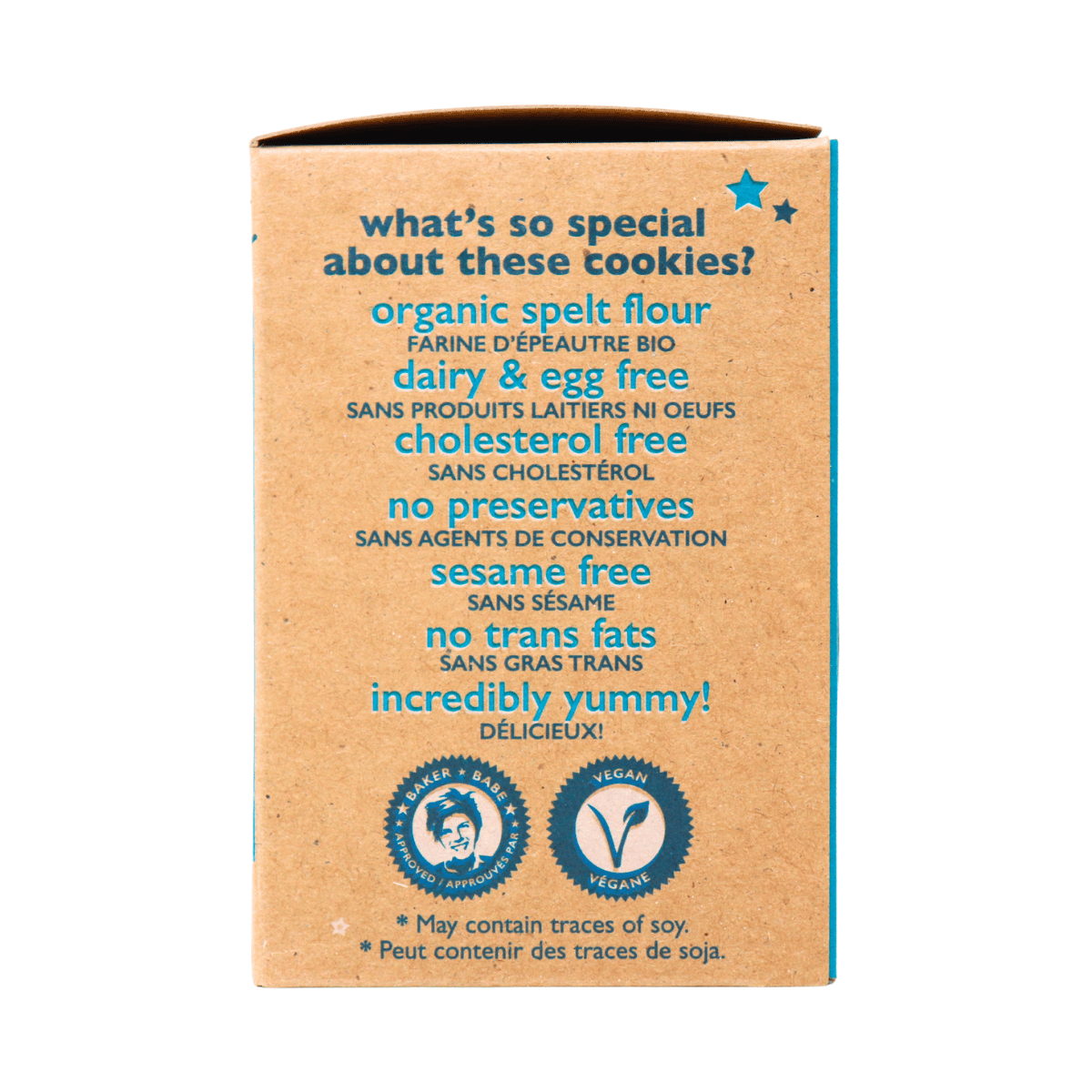 Oats, Organic spelt flour, Unrefined cane sugar, Organic evaporated cane juice, Pure sunflower oil, Baking soda, Sea salt, Pure vanilla extract.