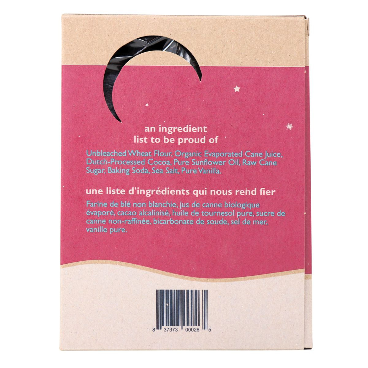 Unbleached wheat flour, Organic evaporated cane juice, Dutch-processed cocoa, Pure sunflower oil, Raw cane sugar, Baking soda, Sea salt, Pure vanilla.