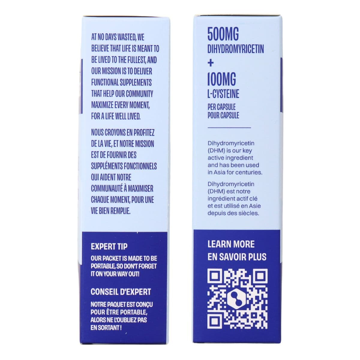 No Days Wasted DHM Detox is made for real life recovery; travel days, celebrations, and everything in between. Clean, plant-based, and conveniently packed, it’s your go-to reset for feeling good and staying sharp.