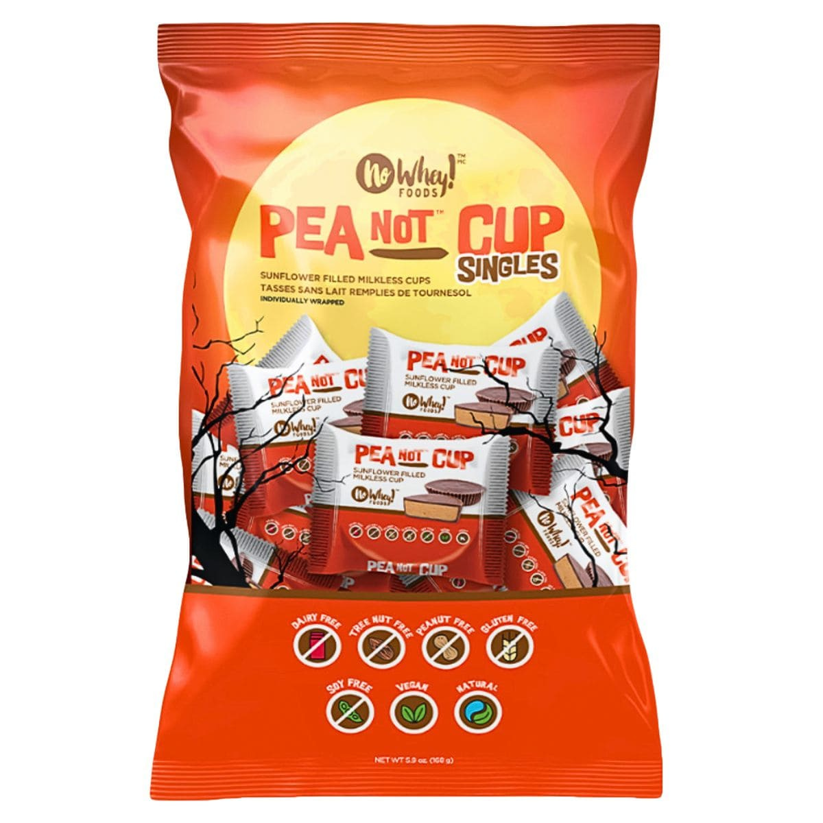 Don't be haunted by the fear of allergens this spooky season. No Whey Foods pea NOT cups are here to make your Halloween munching a howling success. These vegan sunflower butter cups taste just like the classic peanut butter cups–except it's NOT. With a lusciously creamy sunflower butter filling, encased in a dairy-free “milk” chocolate shell, it's completely milk-free, nut-free, gluten-free, and totally allergen-free! Individually wrapped, every bite has got all the mouthwatering flavour you crave, minus the scary stuff. No tricks, just treats!