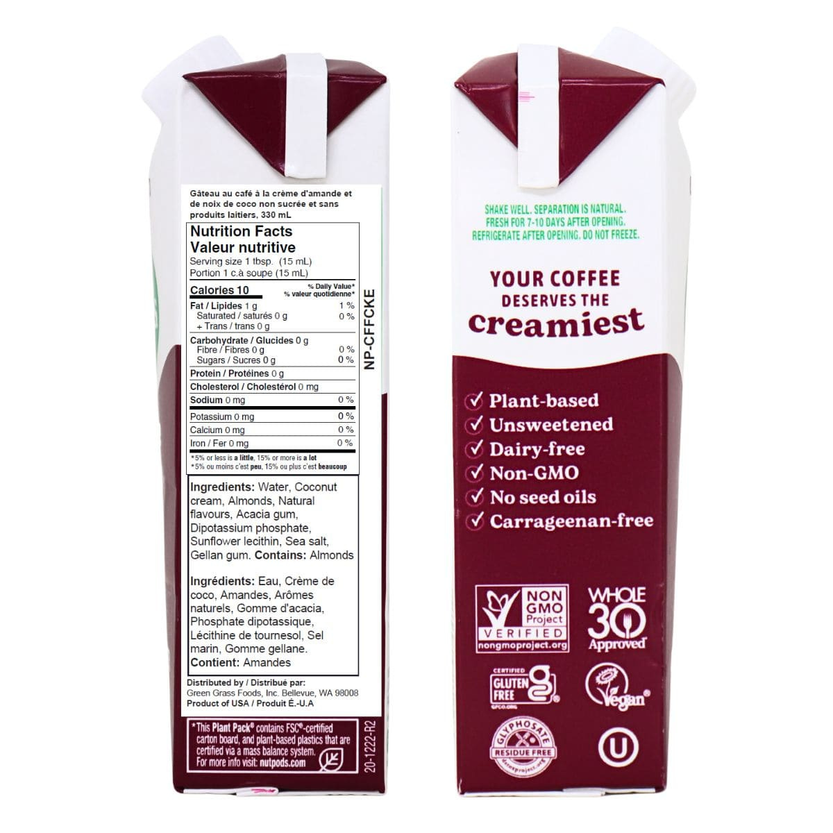 Nutpods Unsweetened & Dairy Free Almond + Coconut Creamer Coffee Cake, 330mL