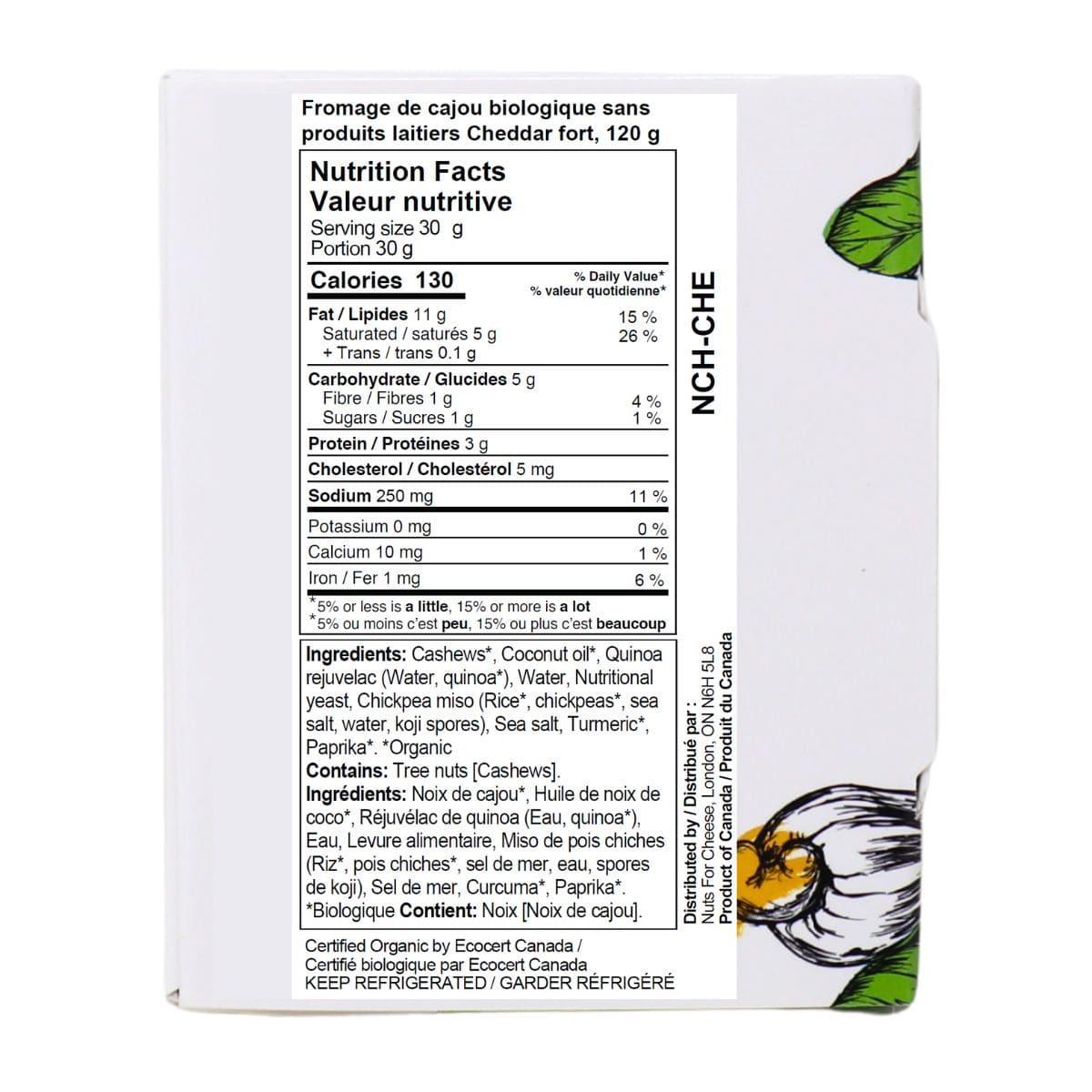 Nuts For Cheese Organic Dairy-Free Fermented Cashew Cheese Sharp Cheddar, 120 g