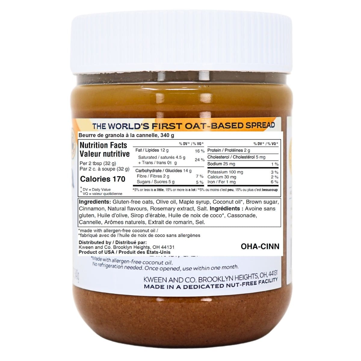 Get ready to rock and *cinnamon* roll! Oat Haus’ cinnamon roll granola butter took all the goodness of the classic cinnamon roll and turned it into this deliciously sweet cinnamon-y oat butter! It tastes just like what you'd get if you scooped out the ooey-gooey middle of a cinnamon roll–except it’s totally allergen-free! That’s right, this cinnamon oat butter is gluten-free, dairy-free, and nut-free! So get ready to savour every spoonful of our cinnamon spread and enjoy the goodness of a freshly baked cinnamon roll with every scoop.