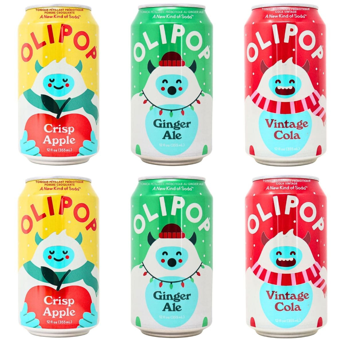 2 each of OLIPOP’s Vintage Cola, Crisp Apple & Ginger Ale, 355 mL each (6 cans total)