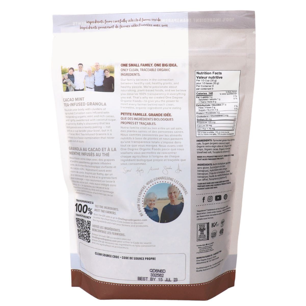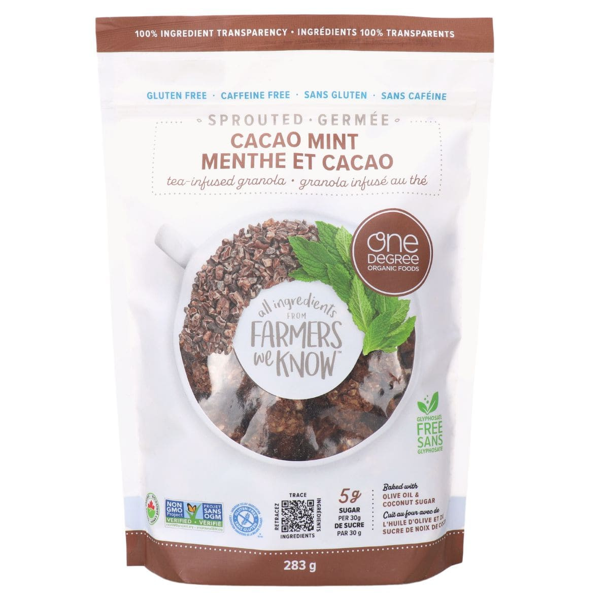 One Degree’s organic tea-infused granola offers an irresistible twist on a classic breakfast. With the bold backdrop of dark and rich cacao, this crunchy blend is packed with refreshing organic mint for a decadent morning pick-me-up that’ll leave you feeling fresh and ready to take on the day. Baked with olive oil and unrefined coconut sugar, each crunchy gluten-free granola cluster is a nutritious treat for you and an invitation to a flavour adventure for your taste buds!