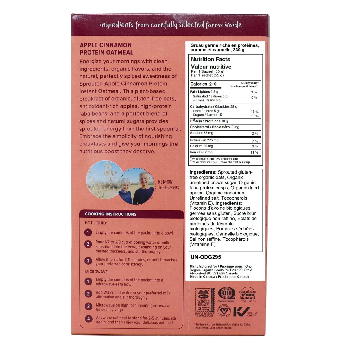 One Degree Organic Foods High-Protein Sprouted Oatmeal Apple Cinnamon, 330 g