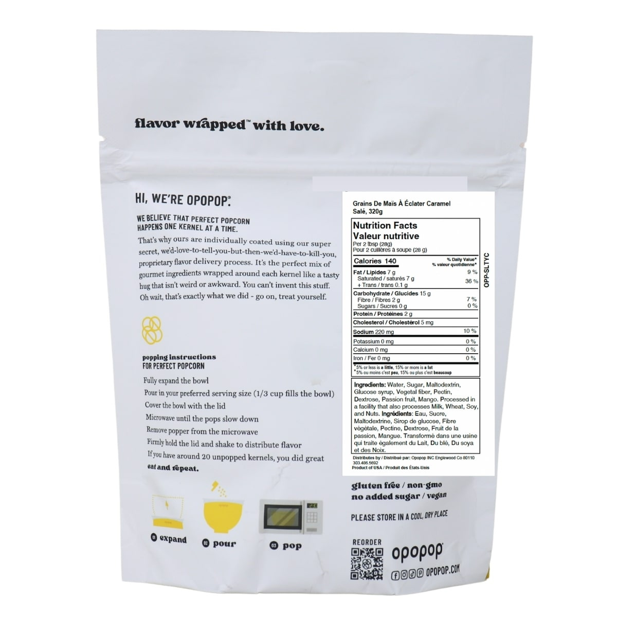 Snack smarter without sacrificing indulgence. Opopop Salty Caramel Popcorn Kernels take your favourite movie-night treat and make it gourmet. Each bag is filled with premium kernels that pop up light and fluffy, then coat themselves in a luscious salty-sweet caramel glaze as they cook. The result? Addictively crunchy, golden popcorn that tastes like it came straight from a fancy confection shop.