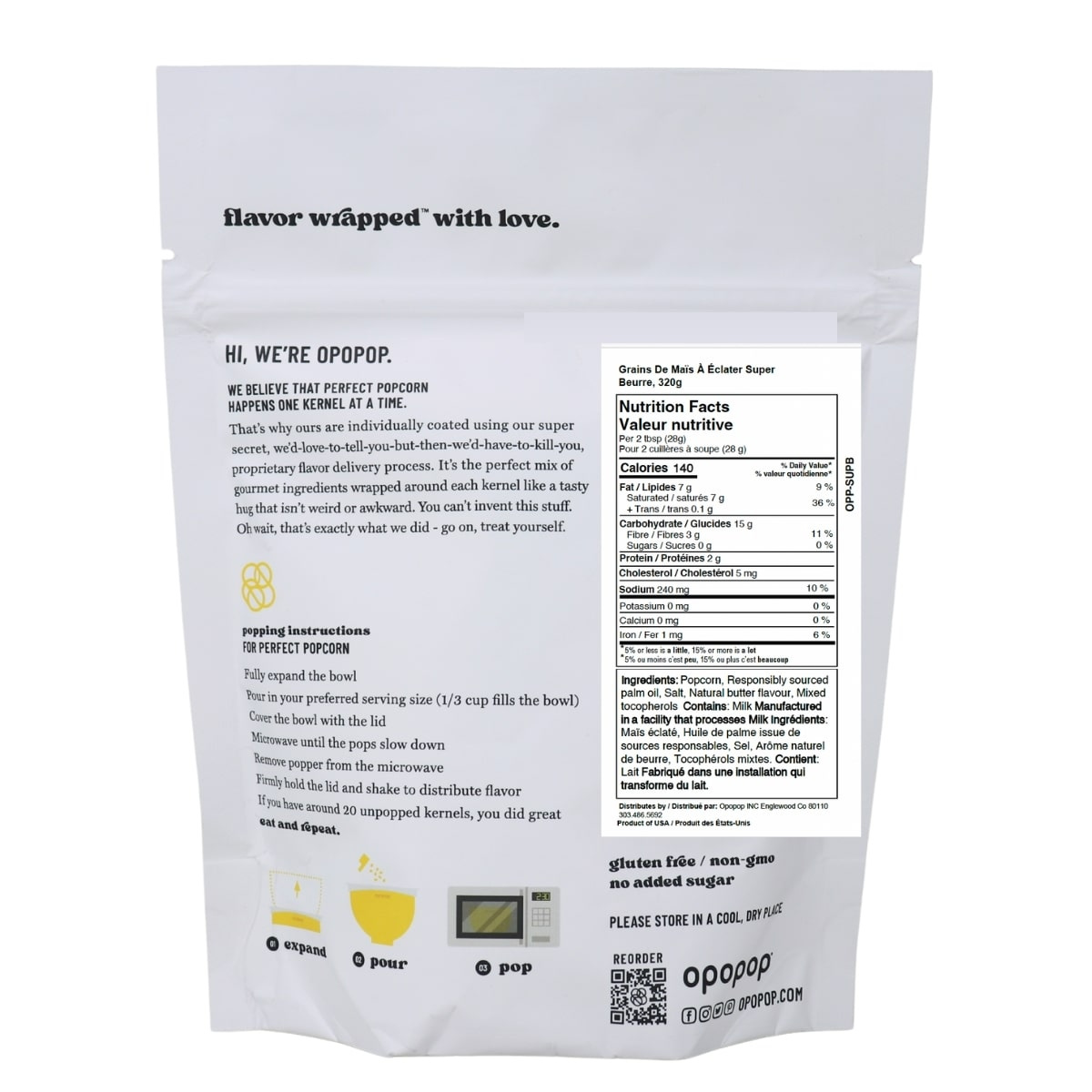 For the true butter lovers out there, Opopop Super Butter Popcorn Kernels are here to deliver. These premium kernels pop up fluffy and golden, then drench themselves in an extra-rich buttery flavor that goes beyond the ordinary. Think classic movie-night popcorn, but bigger, bolder, and way more satisfying.
